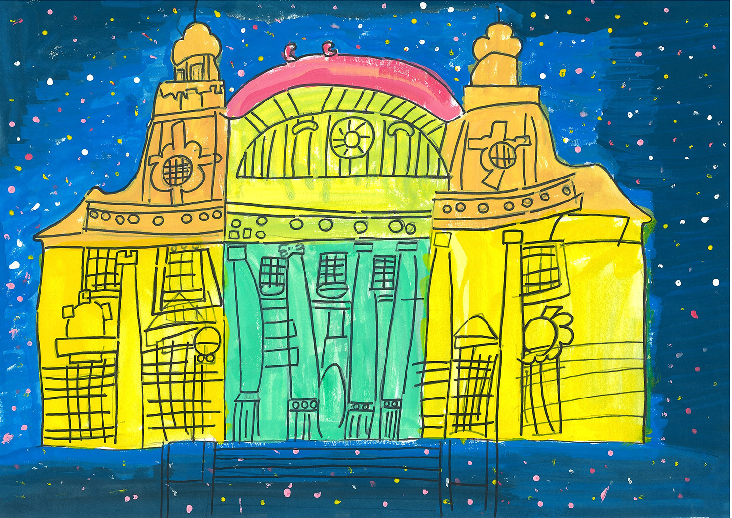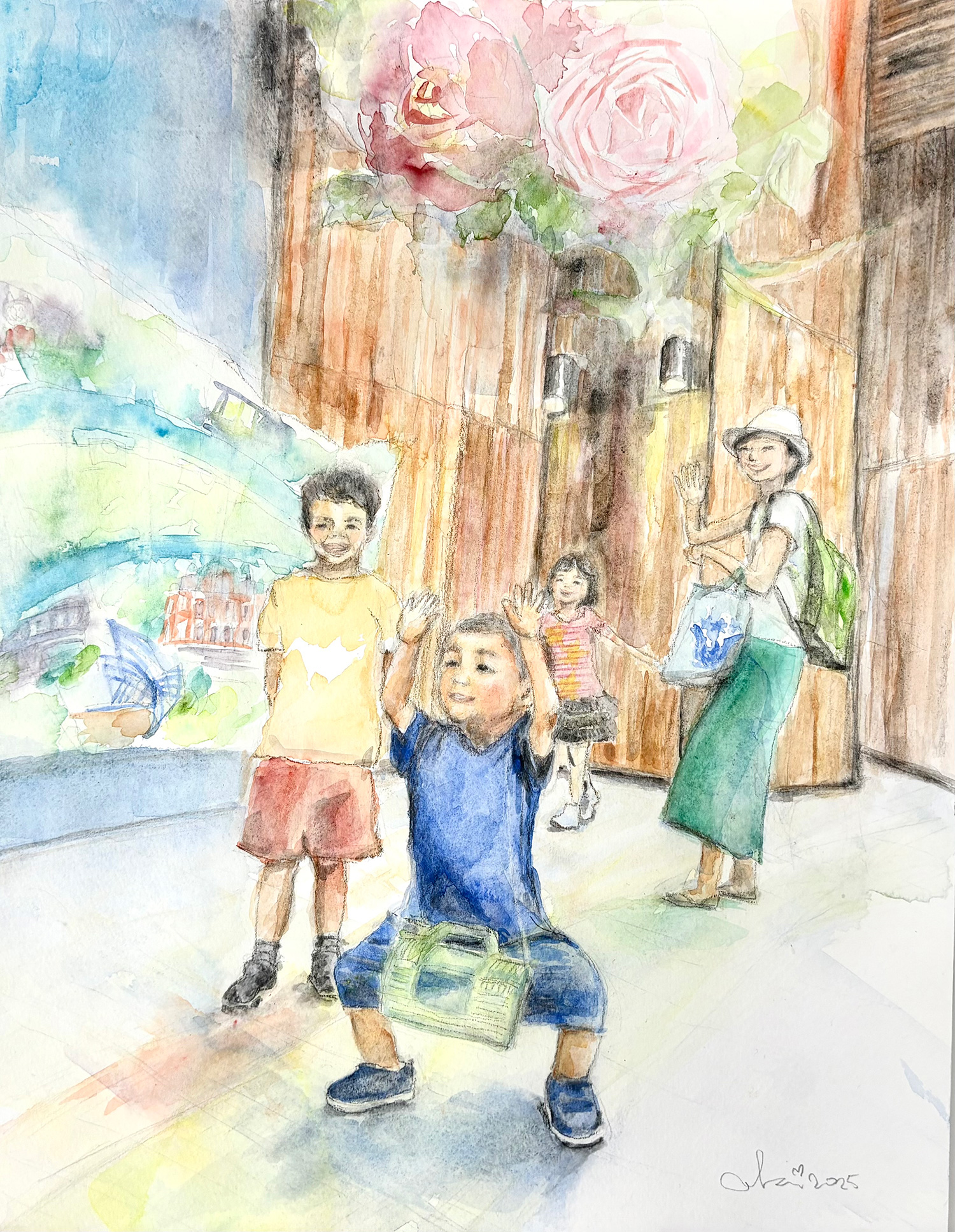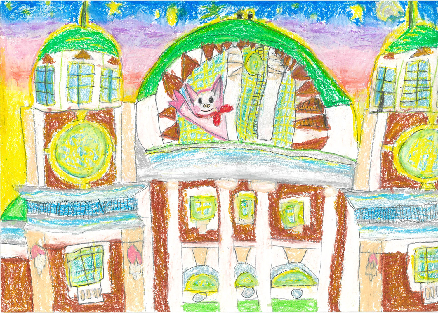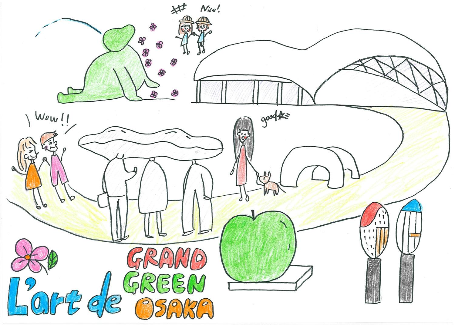 見つけてキタ賞 作品No:J-1(ジュニア部門) 受賞者名:あき タイトル:光り輝く大阪市中央公会堂 PR 私の大好きな北区にある大阪市中央公会堂を描きました。 私は明るい時間にしか行ったことがありません。 夜になると光り輝く大阪市中央公会堂が見ることができる期間があることをテレビで知りました。 大きくなったら見にいきたいという思いで一生懸命描きました。 初めての絵の具で夜空を表現するのが難しかったです。 爪楊枝に絵の具をつけて塗り、星空を表現しました。 作品No:J-18 受賞者名:はなちゃん タイトル:大好きな扇町公園 PR 扇町公園の滑り台やジャングルジムで遊ぶのが大好きです。 自然がいっぱいで虫取りをしたりどんぐり拾いをするのも楽しいです。 作品No:J-44(ジュニア部門) 受賞者名:幸太郎 タイトル:大阪市中央公会堂に来た宇宙船 PR 宇宙船が着陸できる中央公会堂になればいいなと思って描いた 作品No:Y-2(ユース部門) 受賞者名:Rn タイトル:令和の昭和 PR 中津商店街を描きました。昭和の頃はとてもにぎやかだったと聞いて、当時のにぎやかなイメージを表すように鮮やかな色使いを意識しつつ、どこか寂しさもある街並みを表現しました。 イラスト中央に配置した猫のような存在は単なる猫ではなく、中津の独自性と私自身を重ねた存在です。 昔のままの雰囲気や面影と今の変化の中に立つ気持ちを込め、「令和の昭和」とタイトルをつけました。 作品No:Y-3(ユース部門) 受賞者名:はるき タイトル:にぎわう中之島、広がる笑顔 PR 中之島で人々が笑顔で集う大阪の風景を描いた作品です。 作品No:Y-8(ユース部門) 受賞者名:りっちゃん タイトル:L'art de GrandGreen PR 緑いっぱいのGrandGreenOsakaを描きました。 みんな楽しめて、やすらげる美しい場所です! こういう場所がいっぱいある北区になったらいいなぁ 作品No:S-8(一般部門) 受賞者名:のりちゃん タイトル:さあ行こう!魅力いっぱいの北区へ PR 大阪市中央公会堂・OSAKA SKY VISTAのオープンデッキバス・大坂天満宮・大阪市立科学館などの魅力いっぱいの建物とオープンデッキバス等を細かくリアルに再現し、バス観光に大喜びの子ども達や神社に親子連れで参拝するほほえましい姿をシルエット化し、全体に動きと温かさを演出しました。 作品No:S-14(一般部門) 受賞者名:宮下 恵子 タイトル:満員御礼 PR 色々な人々が楽しい時間をすごす場所 作品No:S-21(一般部門) 受賞者名:たけばやすこ タイトル:憩の場 PR 図書館から公会堂を通ってバラ園へ いつ行ってもホッとするお気に入りの場所です。