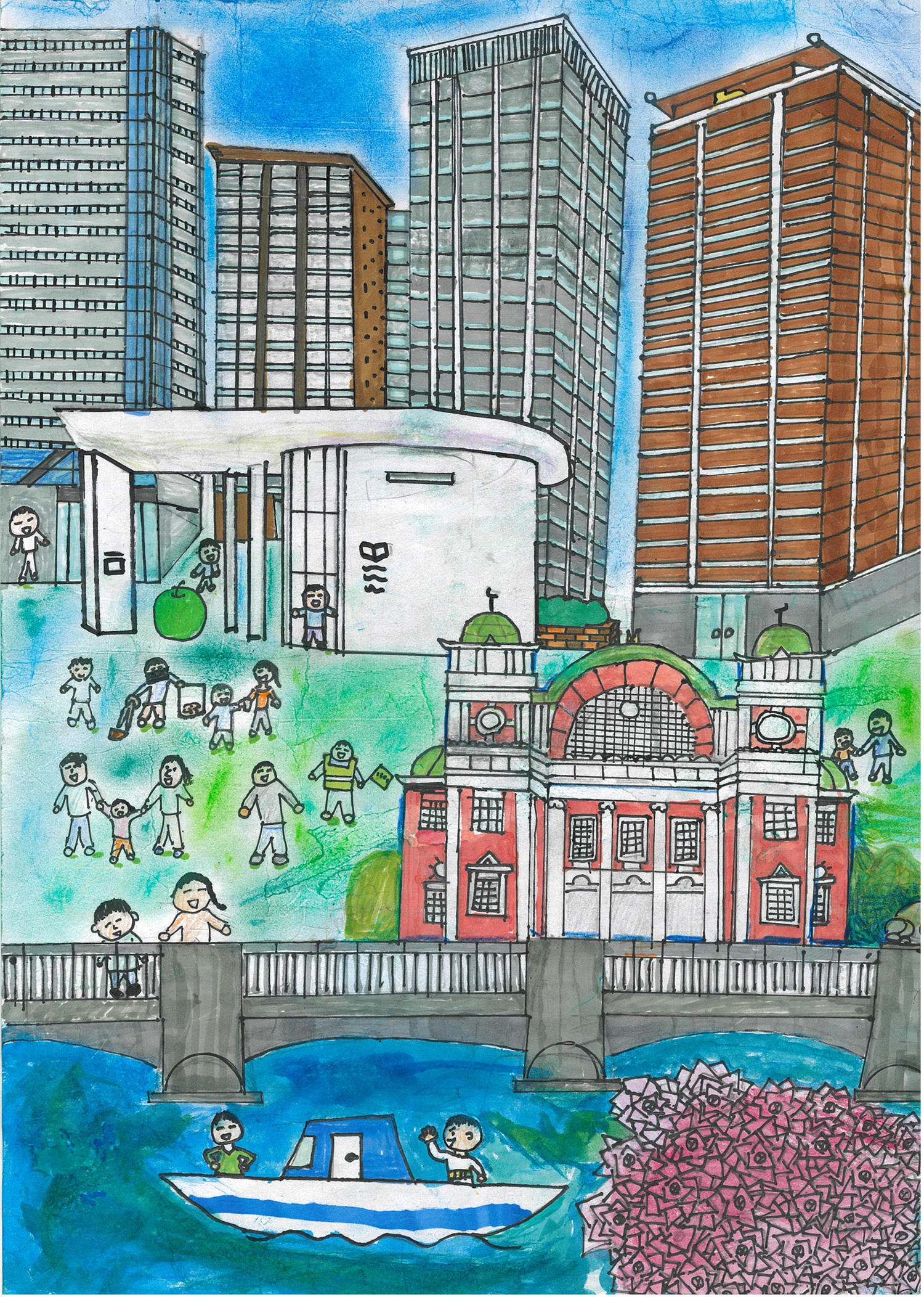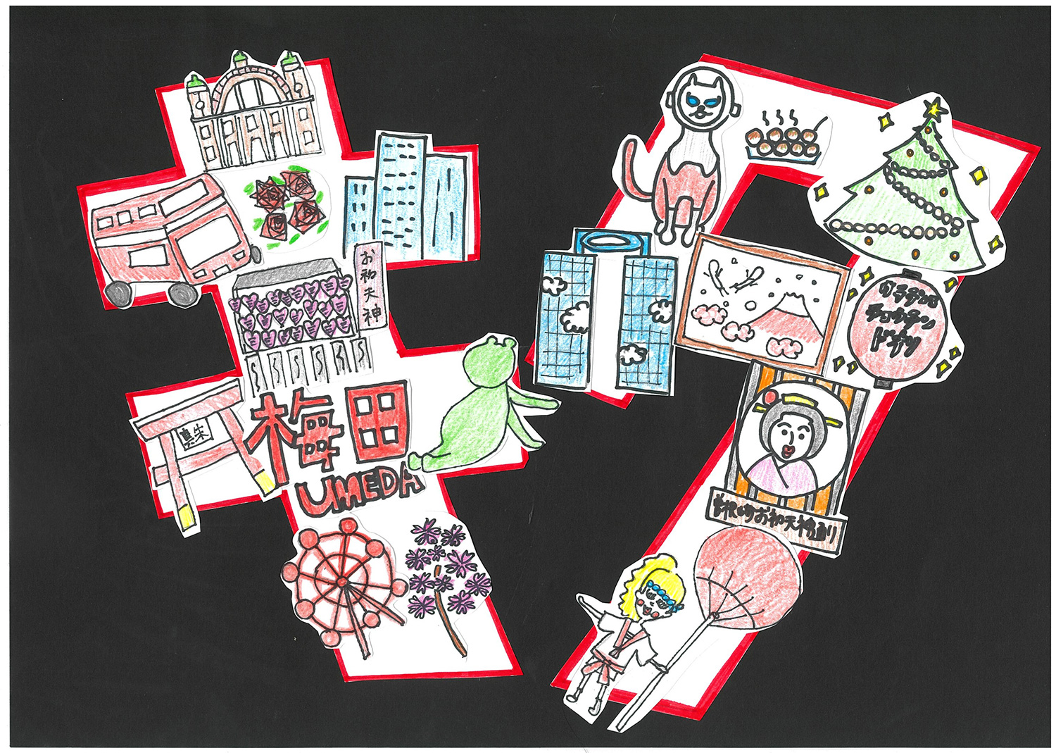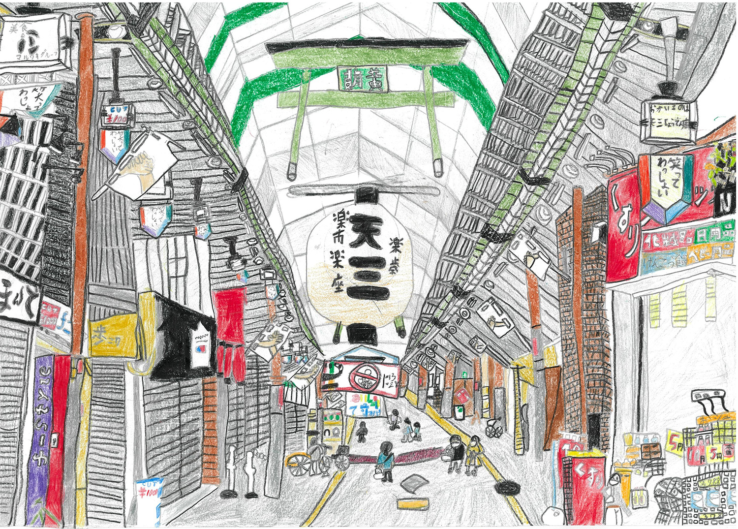 優秀賞 作品No:J-17(ジュニア部門) 受賞者名:ゆうた タイトル:わくわくするてんじんばしすじしょうてんがい PR おいしいものや、おもしろいものがいっぱいあるよ。みんなきてね 作品No:Y-4(ユース部門) 受賞者名:小篠 琴香 タイトル:宙(そら)をも魅了するスカイビル PR 私にとってスカイビルは毎日のように見上げる身近な存在です。 そんなスカイビルの魅力が宇宙にも届くことを願って描きました。 作品No:S-23(一般部門) 受賞者名:福嶋 線久 タイトル:ギュっと中之島! PR 見てても楽しい、歩いても楽しいええとこギュっとな中之島!